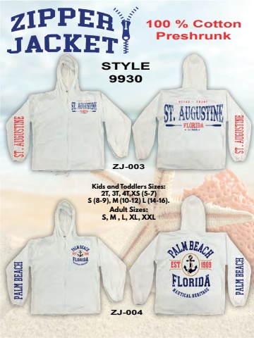 ZJ-003ZJ-004STYLE9930100 % CottonPreshrunkKids and Toddlers Sizes:2T, 3T, 4T,XS (5-7)S (8-9), M (10-12) L (14-16).Adult Sizes:S, M , L, XL, XXL