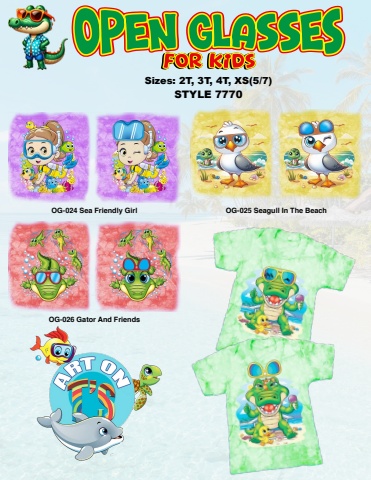 Sizes: 2T, 3T, 4T, XS(5/7)STYLE 7770OG-024 Sea Friendly GirlOG-026 Gator And FriendsOG-025 Seagull In The Beach