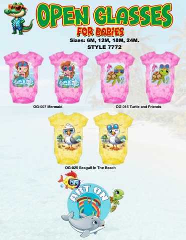 Sizes: 6M, 12M, 18M, 24M.STYLE 7772OG-007 Mermaid OG-015 Turtle and FriendsOG-025 Seagull In The Beach