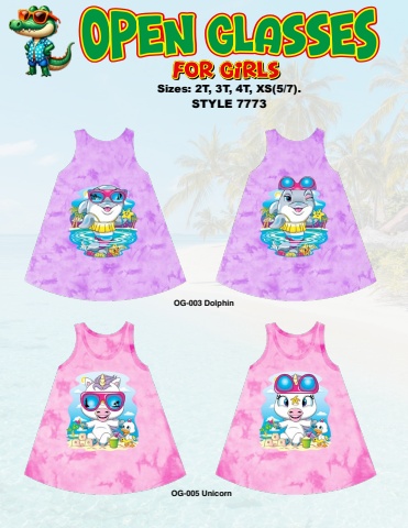Sizes: 2T, 3T, 4T, XS(5/7).STYLE 7773OG-003 DolphinOG-005 Unicorn