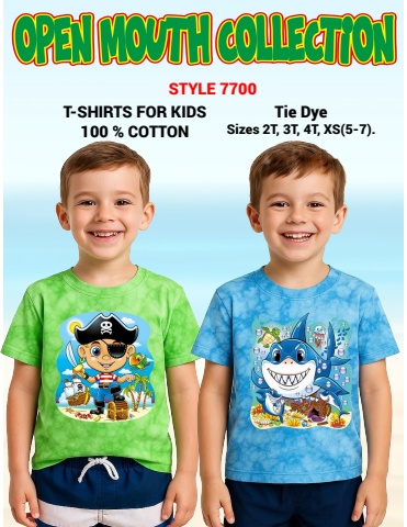 T-SHIRTS FOR KIDS100 % COTTONTie DyeSizes 2T, 3T, 4T, XS(5-7).STYLE 7700