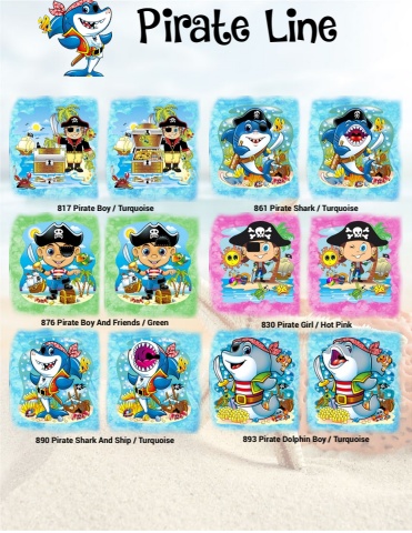 Pirate Line817 Pirate Boy / Turquoise 861 Pirate Shark / Turquoise876 Pirate Boy And Friends / Green890 Pirate Shark And Ship / Turquoise830 Pirate Girl / Hot Pink893 Pirate Dolphin Boy / Turquoise