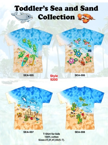 T-Shirt for kids100% cottonSizes:2T,3T,4T,XS(5-7).SEA-005SEA-007Style SEA-006SEA-0089200