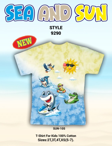 T-Shirt For Kids 100% CottonSizes:2T,3T,4T,XS(5-7).STYLE9290SUN-105